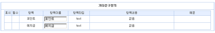기본환경설정에서 포인트/예치금을 사용으로 선택한 경우 회원정보를 수정할 시에만 보이는 항목으로 항목이름만 수정 가능합니다.