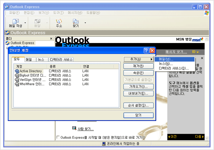 웹메일과 아웃룩 익스프레스 메일 동기화를 위한 설정
