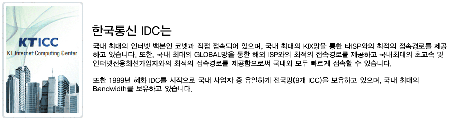 HOME > 호스팅 > 서버호스팅 > IDC 소개 > 영동 KT IDC